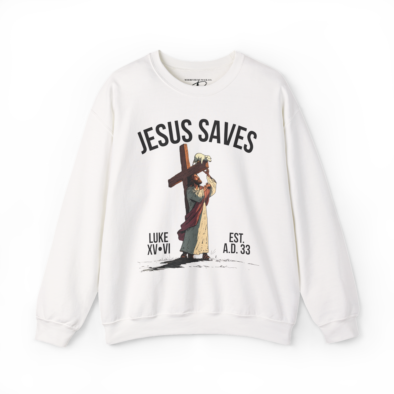 JESUS SAVES - Carried by Christ Crewneck (Luke 15:6) | Front Print Only