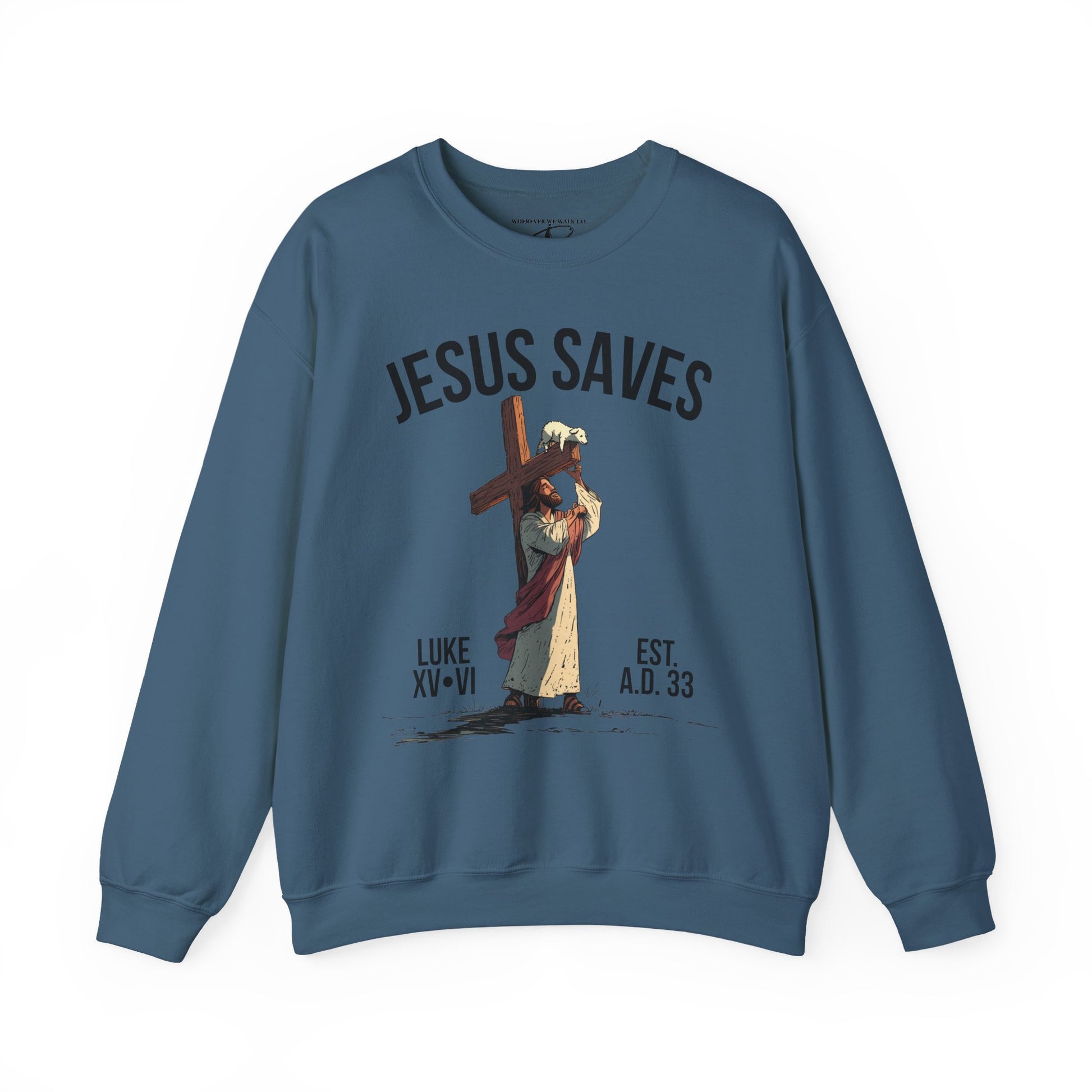 JESUS SAVES - Carried by Christ Crewneck (Luke 15:6)