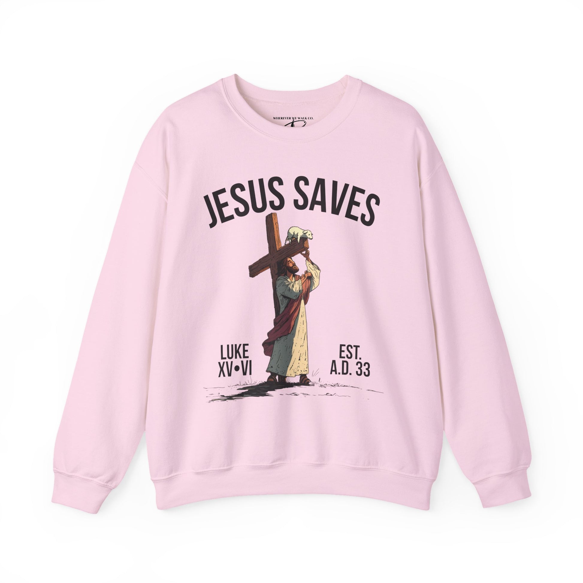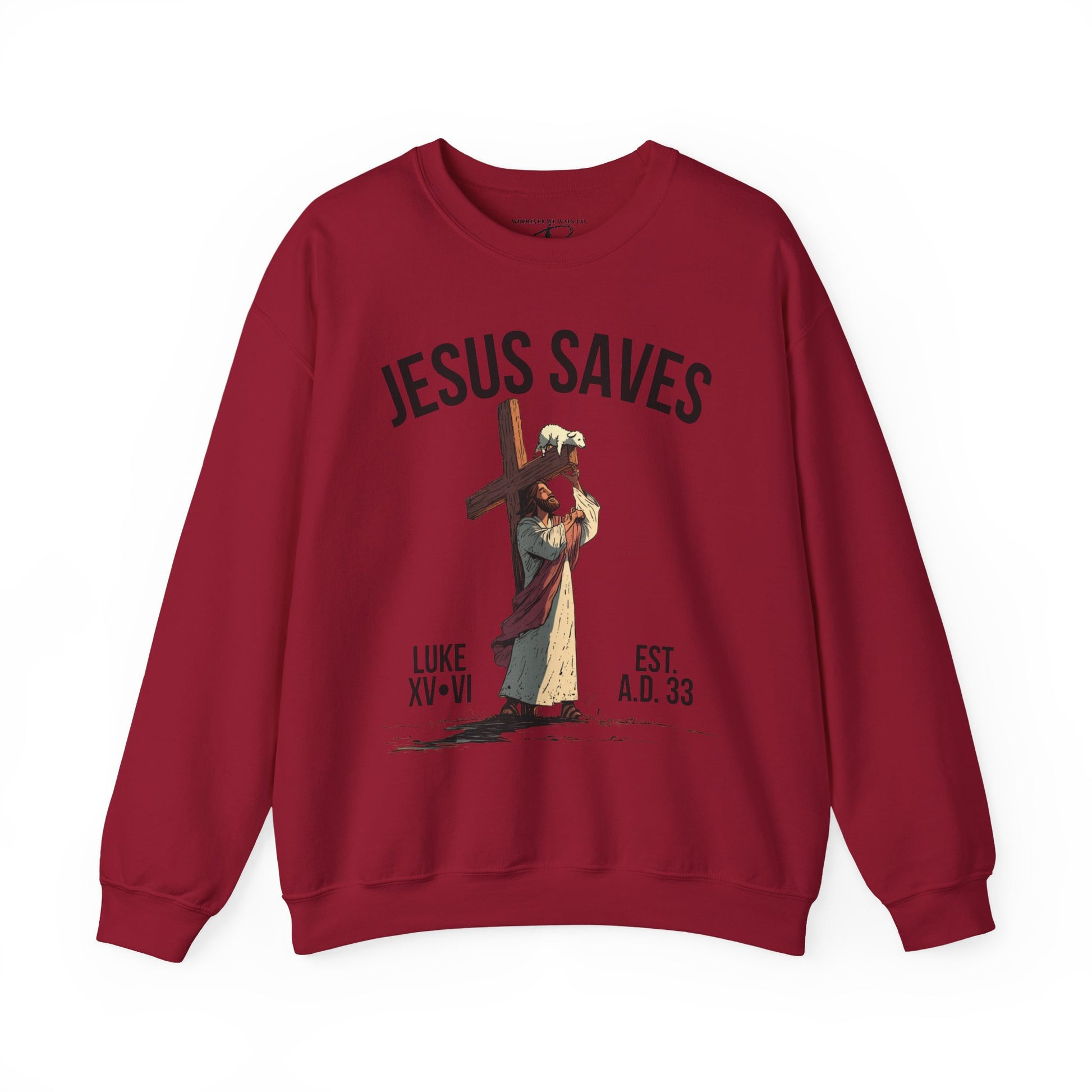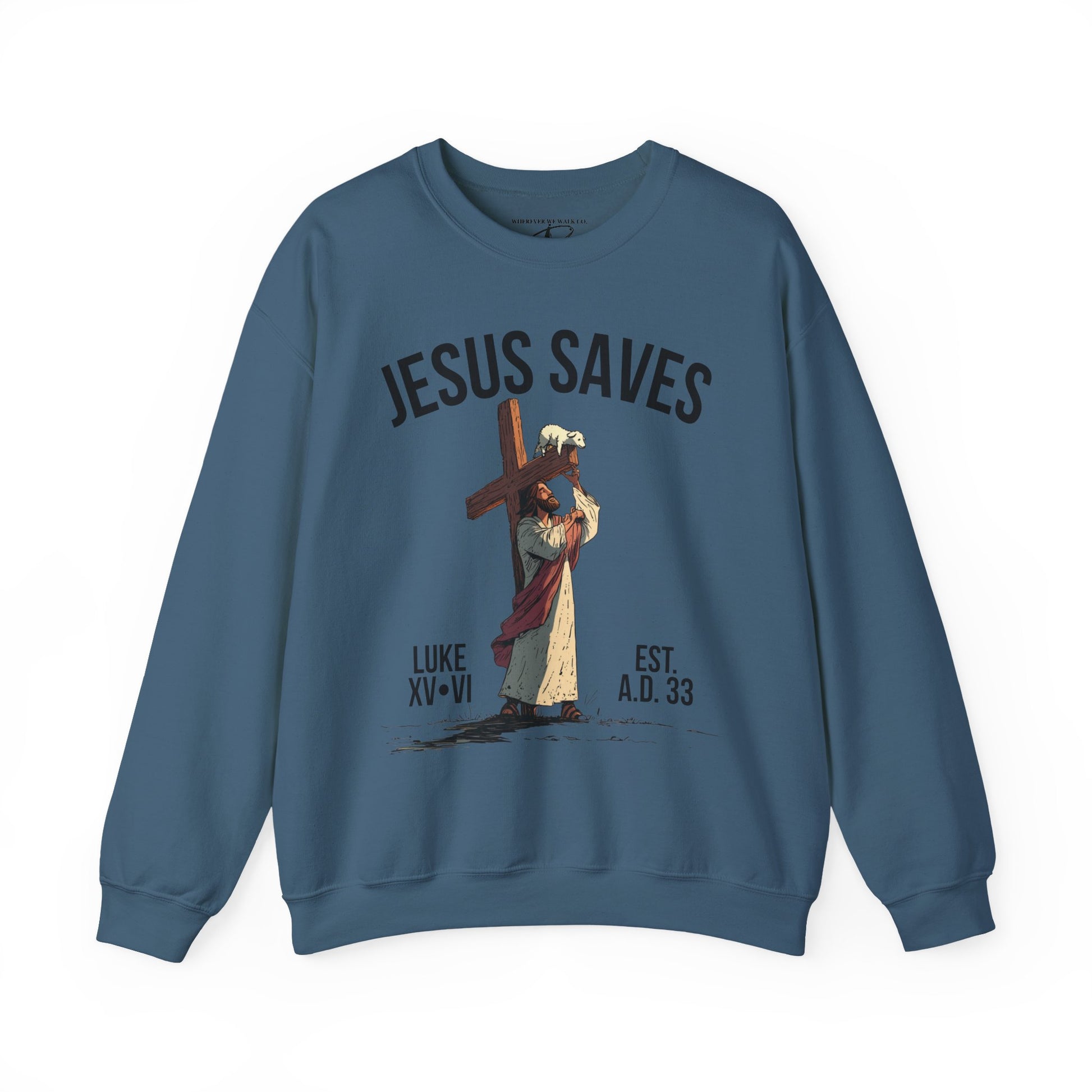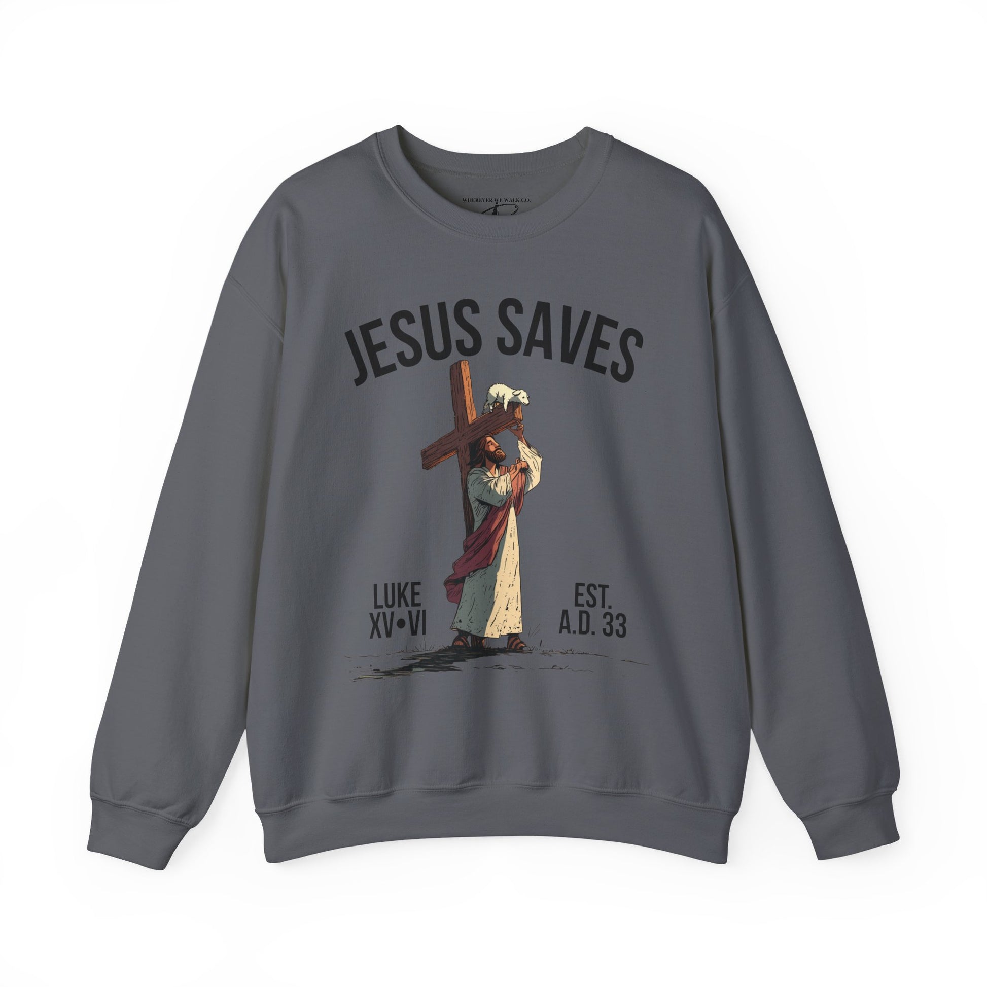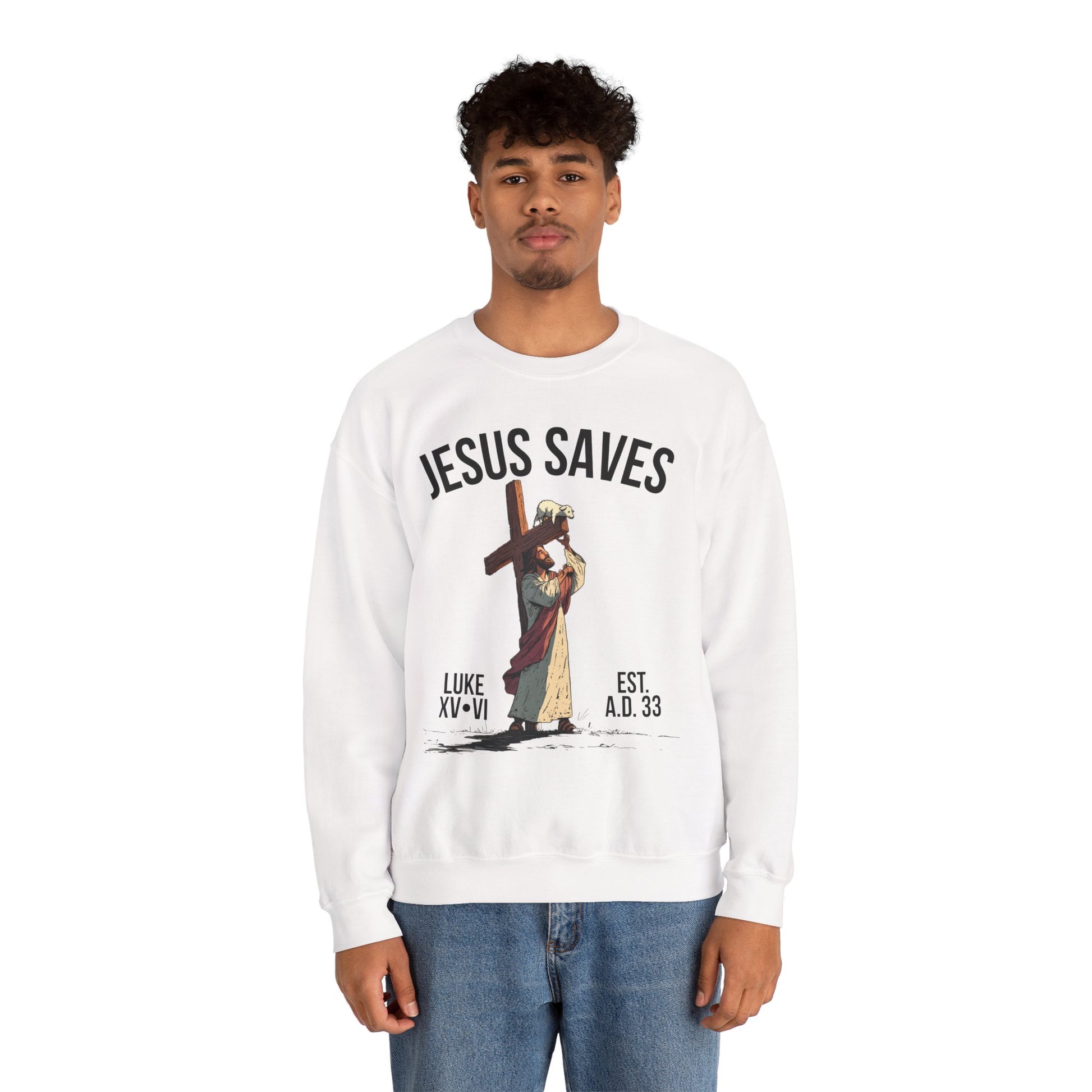 JESUS SAVES - Carried by Christ Crewneck (Luke 15:6) | Front Print Only